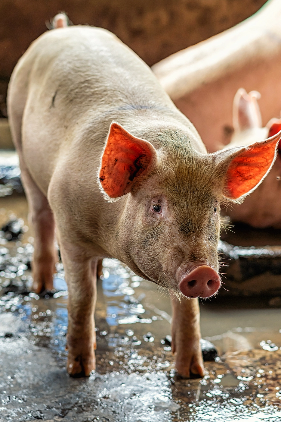 Commercial pig production delivering premium-quality pork through improved breeding, optimized feed efficiency, and strict biosecurity standards.